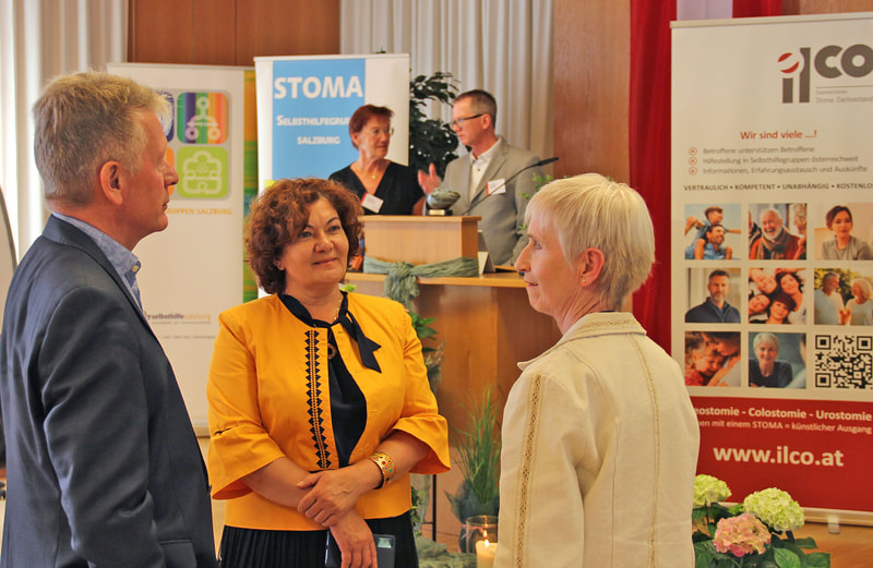 Die Feier startete am Freitag Nachmittag im Heffterhof, wo nach und nach die Gäste aus nah und fern eintrafen. Aus dem Ausland reisten Jon Thorkelsson aus Island, Isabella Grosu aus Rumänien, Sandra Röder, Silke Winkelbauer und Maria Haß aus Deutschland, Wolfgang Göbel aus der Schweiz an. Ein Mitglied der Gruppe Burgenland verwöhnte uns mit selbstgemachten Bäckereien. Am Samstag fand dann die eigentliche Feier im festlich geschmückten Veranstaltungssaal statt.Unser Obmann Hans-Rainer Offenhuber begrüßte alle Gäste der Veranstaltung. In seiner Rede beleuchtete er die vergangenen Entwicklungen der ILCO und gab einen Ausblick auf deren künftige Ausrichtung. Jon Thorkelsson von der EOA richtete ebenfalls Grußworte an die Anwesenden und unterstrich die Wichtigkeit der Arbeit in der Selbsthilfe. Landesrätin Mag. Daniela Gutschi, eine Vertreterin des Salzburger Bürgermeisters, GRin Gabi Venditto-Wagner und der Dachverband der Salzburger Selbsthilfe betonten in ihren Reden die herausragende Rolle der ILCO, die weit über die reine Selbsthilfe hinausgeht. Der Verein steht für Zusammenhalt, Austausch und Engagement – Werte, die auch in Zukunft das Fundament seiner Arbeit bilden sollen. Frau Sandra Röder, Vorstandsmitglied der Deutschen ILCO richtete ihre Grußworte abschließend an die Festgäste und überreichte dabei einen kleinen STOMA-Bären als Maskottchen. Nach einer kurzen Kaffeepause erfolgte der hervorragende Fachvortrag von Prof. Dr. Weiss aus dem KH der Barmherzigen Brüder in Salzburg über Funktion und Beschaffenheit des Darms. Anhand zahlreicher bildlicher Darstellungen konnte er umfassend, ver ständlich die Erkrankungen und Ereignisse erklären, und die aktuellen medizinischen Möglichkeiten und Varianten eines Stomas aufzeigen. Nach dem Mittagsbuffet gab es den Fachvortrag der Stoma Ambulanz der SALK. Diesmal zum Thema: „Von der prästationären bis zur postoperativen Stomaversorgung am Beispiel Uniklinikum Salzburg“. Hersteller von Stomaartikel waren mit ihrem Sortiment vertreten und präsentierten ihre Produkte. Eine Volksmusikgruppe lockerte zwischen den Programmpunkten die Stimmung auf. Nach dem offizielle Programmende gab es noch eine Stadtführung und ein Abendessen im Sternbräu. An der Hotelbar im Hefterhof fand die Jubiläumsfeier schlussendlich ihren Ausklang
